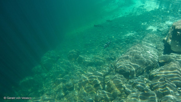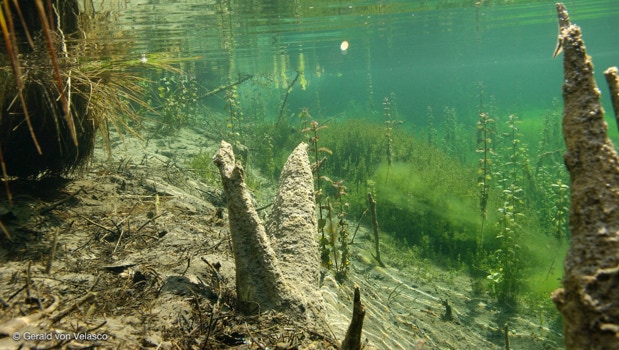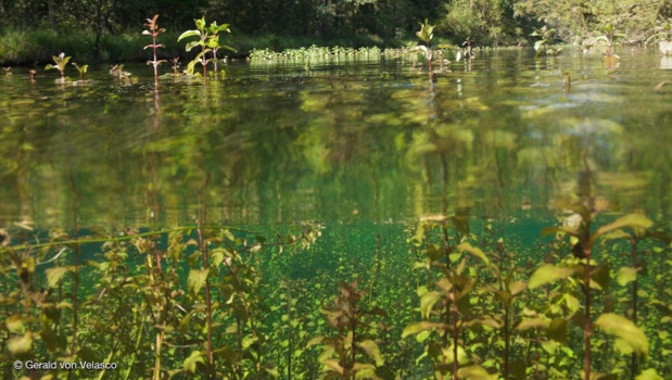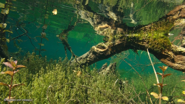 Zu allererst muss ich um Verzeihung bitten, dass ich nicht veröffentliche, wo die Aufnahmen entstanden sind. Dieses traumhaft schöne Unterwassergebiet ist äußerst empfindlich und braucht absoluten Schutz. Ich selbst habe mich vorsichtiger in dieser Zauberwelt bewegt, als beim Höhlentauchen. Von Grundwasser gespeist sind hier Unterwasserlandschaften entstanden, die der Phantasie kaum Grenzen setzen.