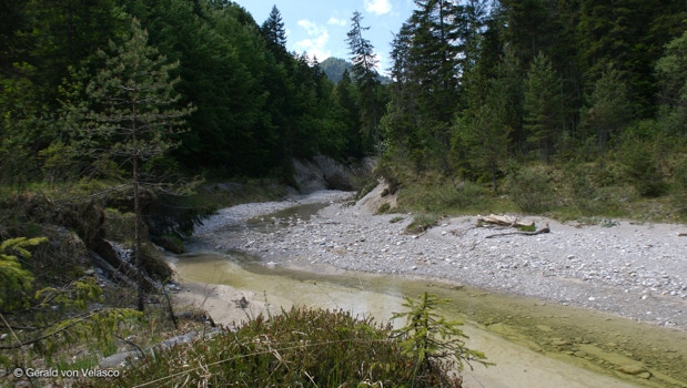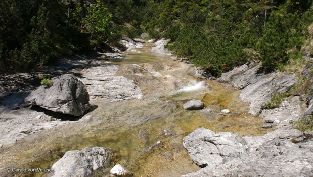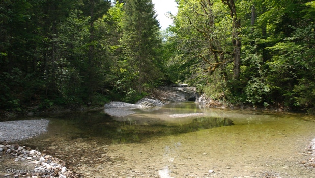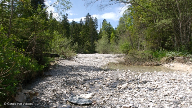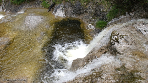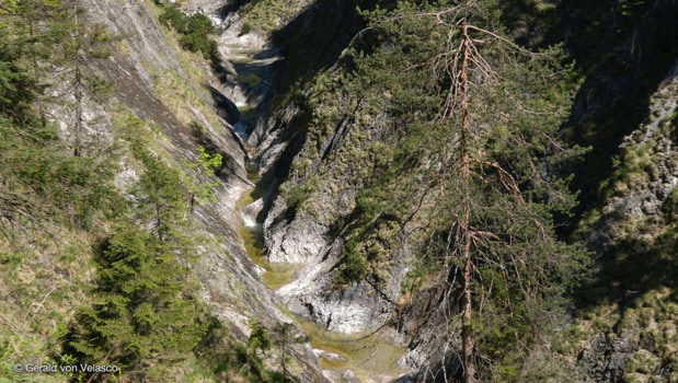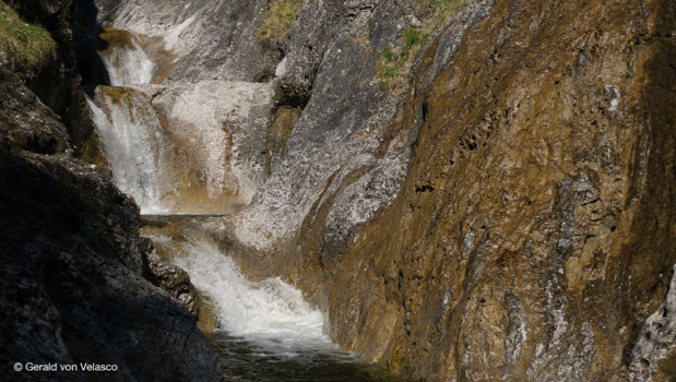 Viele kennen den Sylvensteinspeicher am Oberlauf der Isar. Hier hat ein ausgetrocknetes Bachbett meine Neugier geweckt. So bin ich den Steinen gefolgt, traf auf erste Wasserpfützen, später ein versickerndes Rinnsal, dann ein Bach. Plötzlich ein kleiner Wasserfall, ein Bergbach, eine undurchdringliche Klamm, weitere Wasserfälle und letztendlich wieder ein Bächlein, ein Rinnsal und die Quelle. Das ist der Staffelgraben.