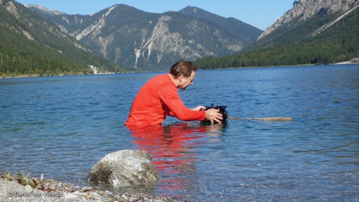 Vorwiegend bin ich mit meiner Ausrüstung in den Alpen, im Schwarzwald und Schleswig Holstein unterwegs. Hier erkunde ich Bachläufe, Schluchten und Seen. Die Vielseitigkeit des Wassers birgt eine grosse Faszination. Diese versuche ich festzuhalten, im Sommer oder im Winter, über oder unter Wasser.